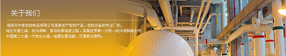 慈溪市中泰密封制品有限公司是集生产密封产品,密封设备的专业厂家。地处东通之滨、杭州湾畔、紧邻杭甬高速公路,紧靠世界第一大桥---杭州湾跨海大桥;中国第二大港---宁波北仑港,地理位置优越,交通极为便利。